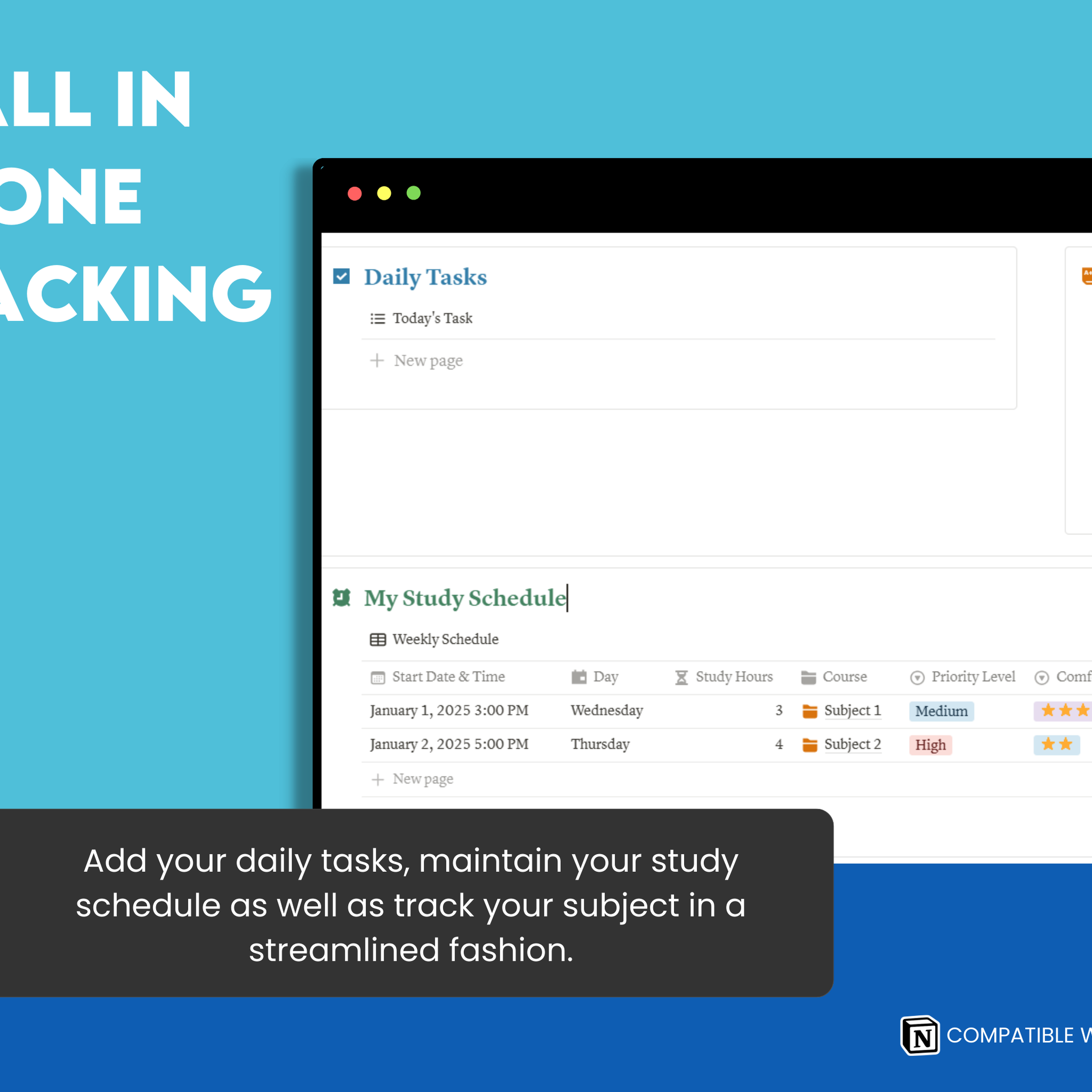 "I’ve been using MyNotionPlanner for the past few months, and it’s completely transformed how I organize my academic life. The task manager and grade tracker are my favorite features—definitely worth the investment!"